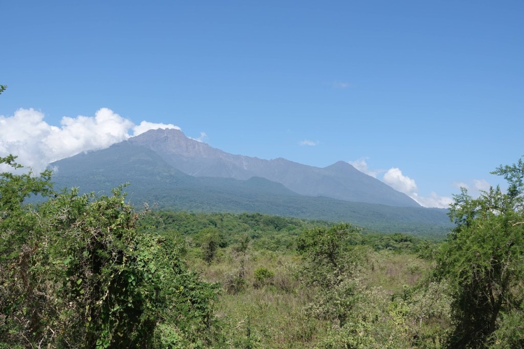 Today was our last day in Tanzania, and we had chosen a low key, less-visited attraction to end our time here – Arusha National Park. This is located a short drive away from Arusha, on the way to Kilimanjaro Airport – so very convenient for our evening flight. After the very long day we had just had stuck in traffic jams, we arranged with our guide Estomih to start the day late, at 10.00. After half an hour of driving we were already at the park’s main gate and visitor centre, from where we got a brilliant view of Mount Meru. At 4560m, this dormant volcano is Tanzania’s second highest mountain and a popular four-day trek for climbers.