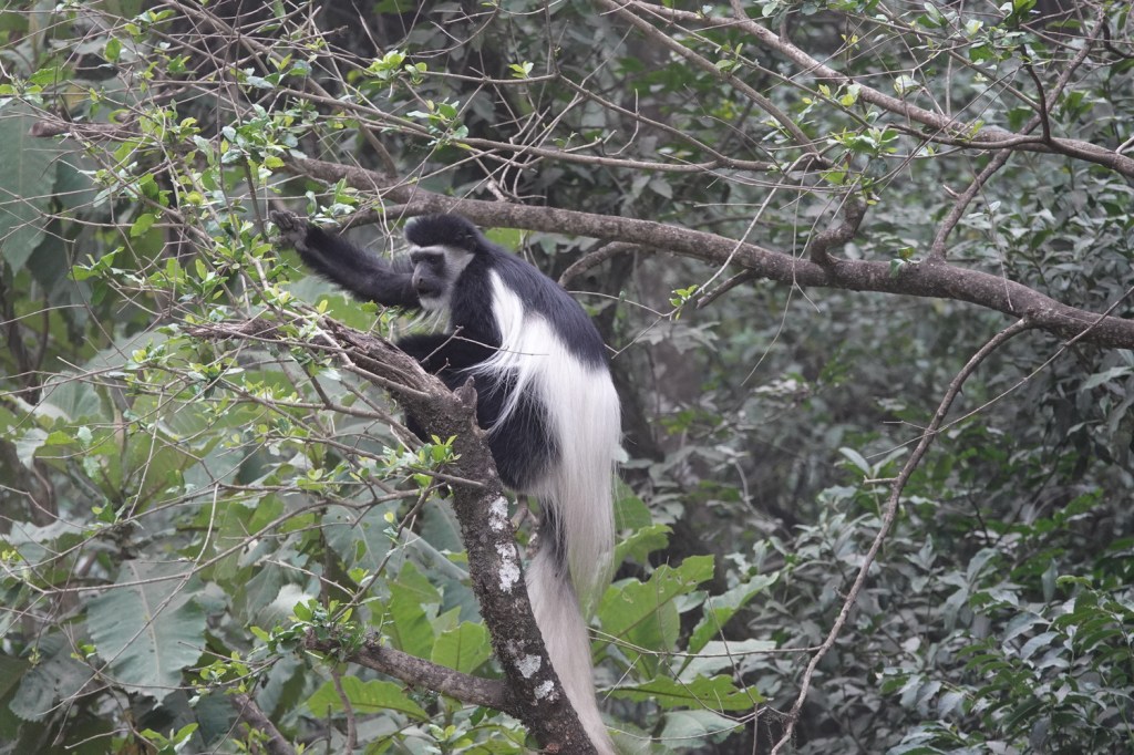 Heading back towards the park entrance, we finally got a up-close view of magnificent black-and-white colobus monkeys….