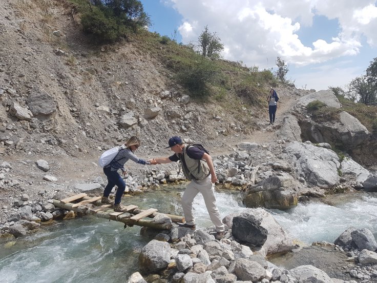 I was piggybacked across the river. Thank you helpful travellers + onlooker.