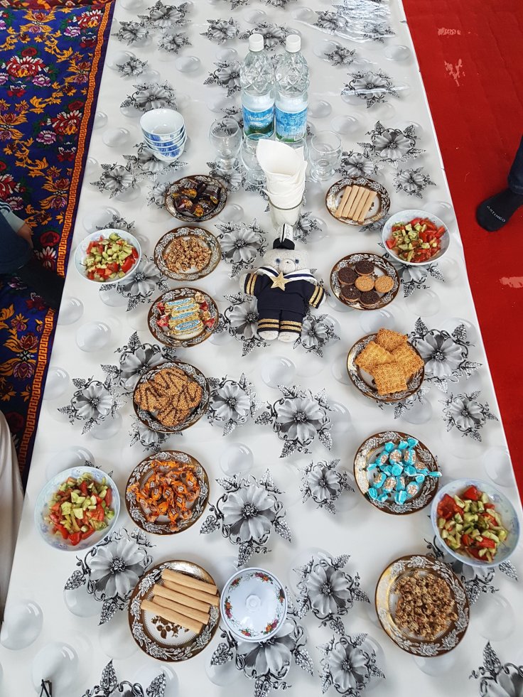 The owner prepared a feast for dinner that starts off with lots of sweet treats and the usual tomato and cucumber salad.