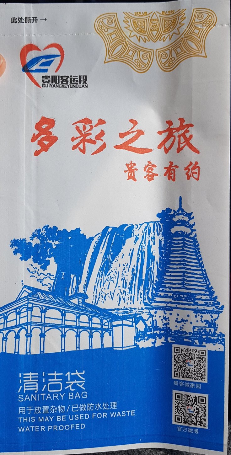 The train has sanitary bags for spitting + waste. Spitting is very common place here. On the way back from Gubeikou, the bus driver opened the window to spit out of it.