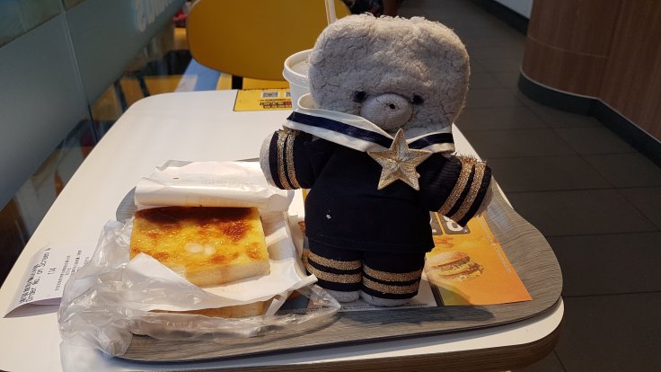 I then bought some kind of dessert from sweetness cheese. It’s essentially brioche with a sweet butter layer on top. I took shelter from the rain in McDonald’s to eat it: