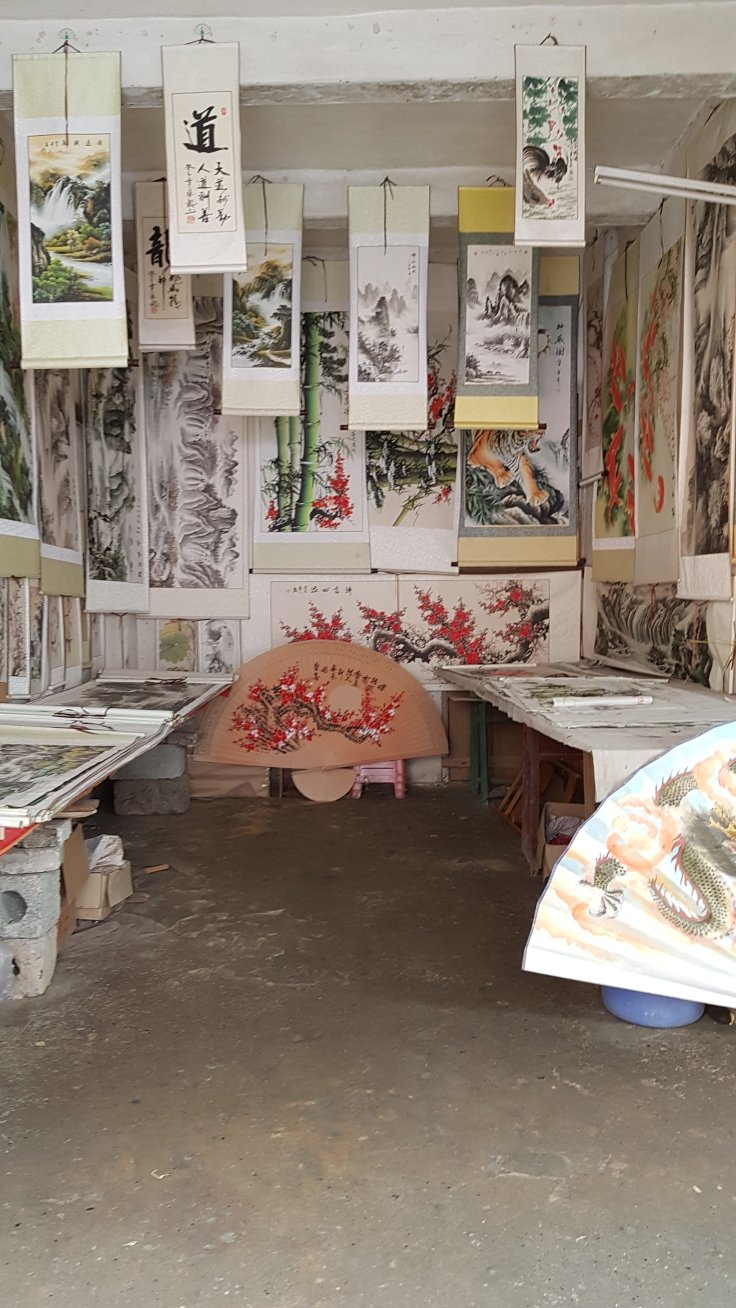 As I wandered around, I stumbled upon an art studio, which provides “make your own fan” sessions – mainly for Western tourists. (Chinese tourists hover around the Western tourists painting with their phone camera in action)
