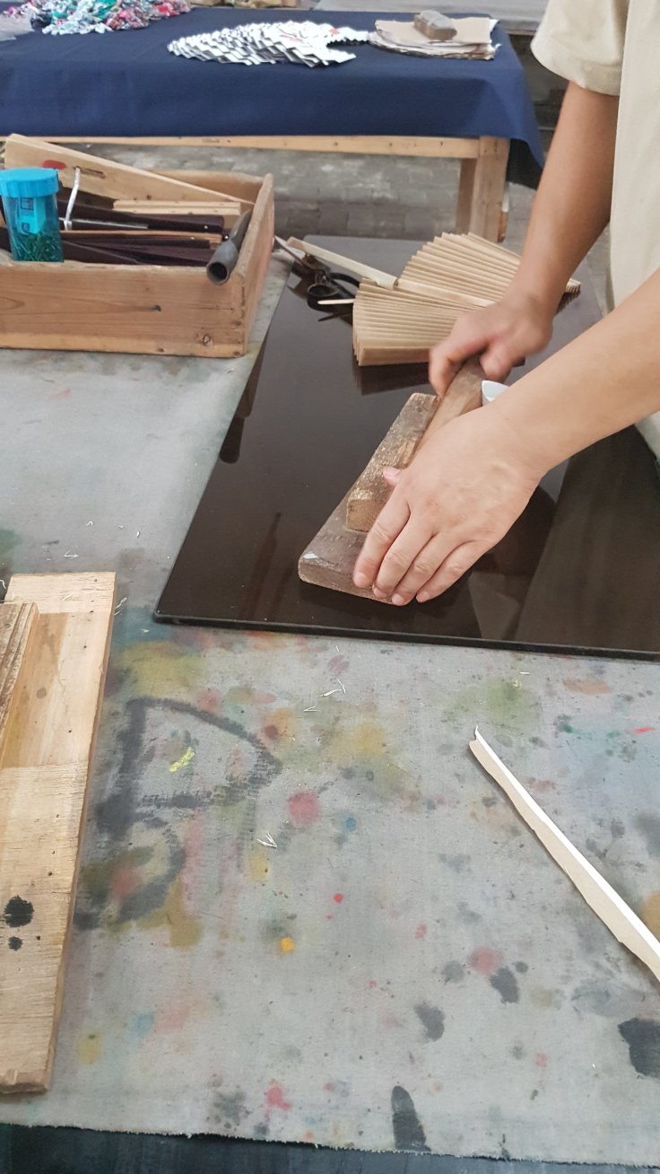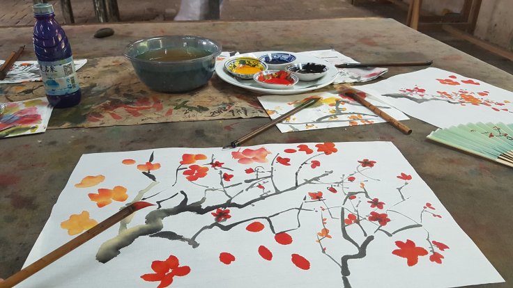 The teachers help you practice and give advice before actually painting on the fan.