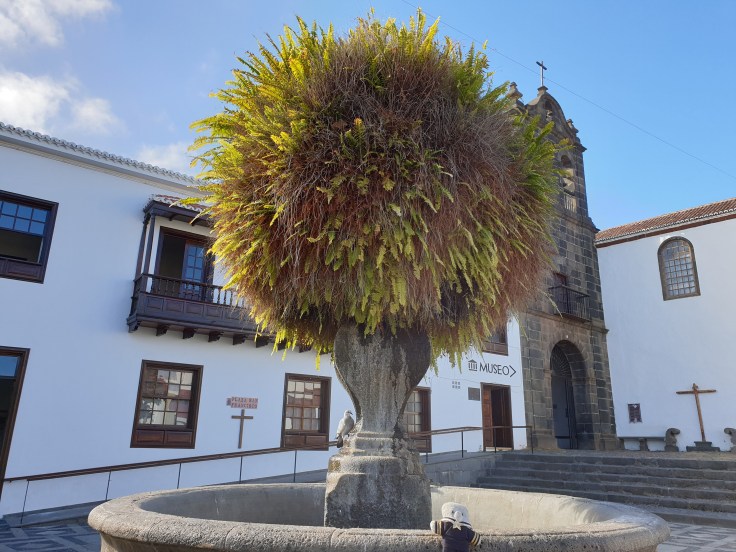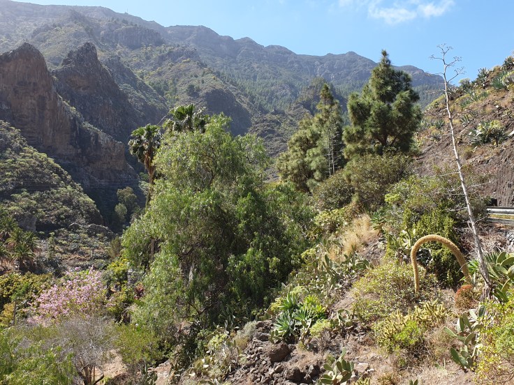 The first island on my trip was La Palma, also called La Isla Bonita (the beautiful island) in Spanish. I was rather dreading the early morning EasyJet flight from Gatwick, which made me get up at 05.30, but in the event, Gatwick was pleasantly well organised, and the flight was pretty comfortable. From a miserable 8C in London the plane touched down to a nice pleasant 20C and bright sunlight in Santa Cruz de la Palma. From the airport I hired a car and drove through the countryside, admiring the strange plants and bright flowers – the Canary Islands are a botanist’s dream, with many unusual species including palm trees, cactuses, wild aloe verde, the dragon tree, and other really strange things that I thought looked like a woolly mammoth’s trunk.