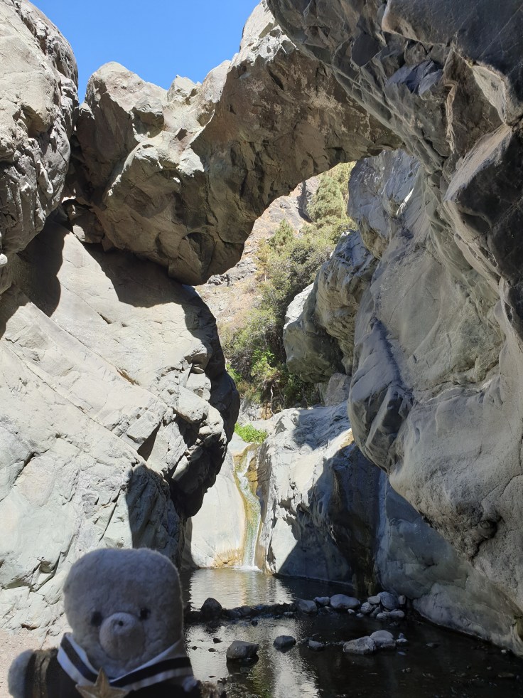 I also remembered people posting that you shouldn’t follow the path but should scramble up the riverbed instead. So off I set, thinking that 5km should take about an hour’s walking. Initially the riverbed was totally dry, but after a short while there was a small stream that I needed to jump across occasionally. The gorge was quite deep, so the stream must have been much bigger in the rainy season.