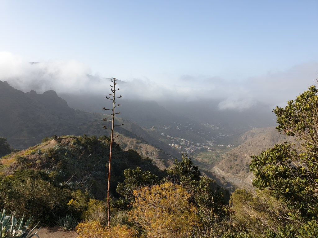 I had two full days to enjoy La Gomera. Today I decided to explore the island by car and to look for good places to hike on the next day. The car hire company has said the car was fully insured except for damage to tyres caused by driving over rocks on the road. I soon understood why – the whole island is one steep extinct volcano that has been eroding away into the sea for the past few million years. The most visible sign of this erosion are great sweeping valleys, where rain dropping on the top of the mountains washes down to the sea. But another sign is the frequent little piles of rock in the road from small landslides.