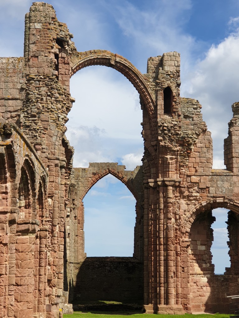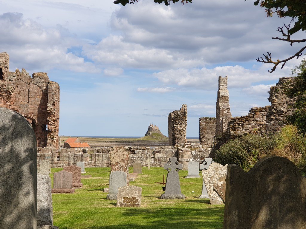 From Bamburgh I headed further up north to Holy Island, home of the famous ruined abbey of Lindisfarne. This was established as a monastery in 634AD and was a leading centre of learning and religion for all northern England. The monastery was probably the first ever place in Europe to be raided by the Vikings, in 793. Holy Island can only be reached during low tide, and many road signs advise you of safe crossing times and the perils of getting your timing wrong. There isn’t much left of the abbey any more – yet another ruined abbey to add to my list for this holiday – but the site still somehow has a special feeling to it, and is very photogenic, with a 15th century castle looming on a hill in the background.