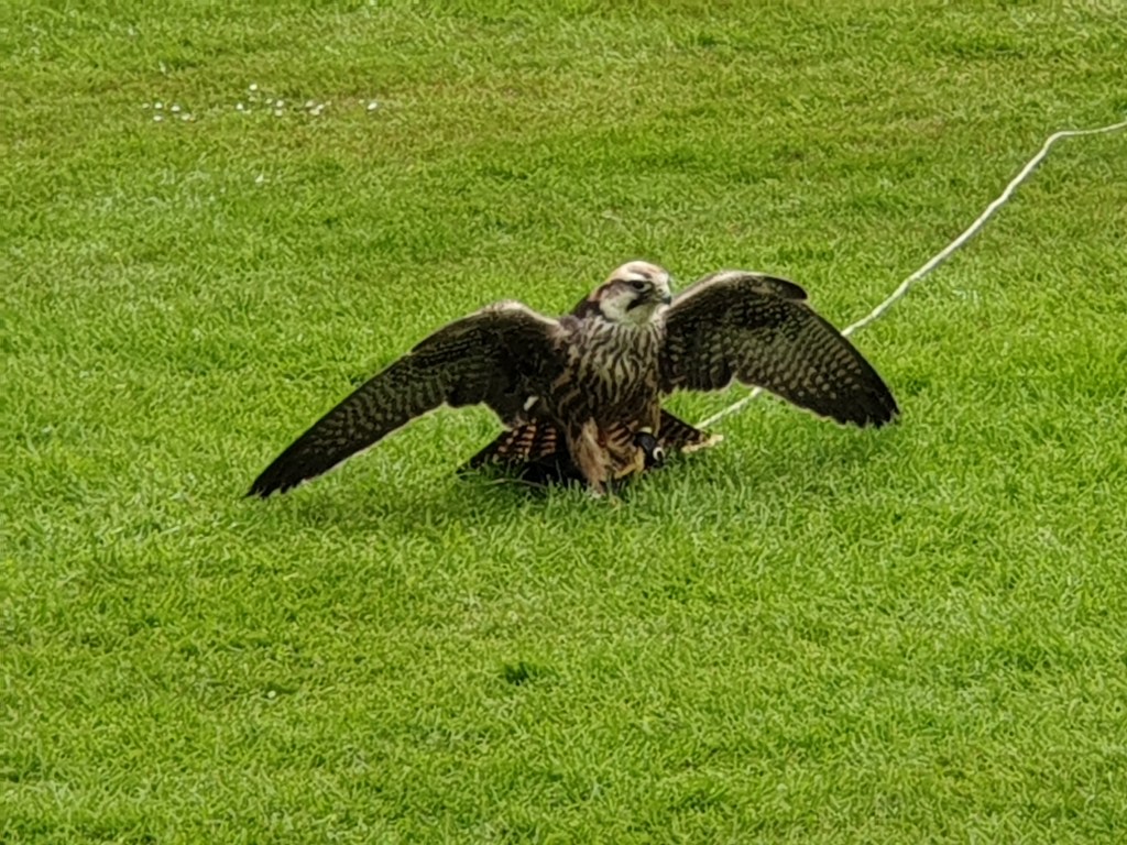 I was very lucky – as soon as I left the car, it stopped raining, and I could enjoy a display of falconry in the castle’s grounds. I learnt the difference between a falcon and hawk, watching the birds swoop for pieces of fresh meat offered by the falconer. The falcons prey on other birds, swooping down at over 200mph to knock their victims out of the sky, whilst the hawks attack ground targets like rabbits or pheasants.
