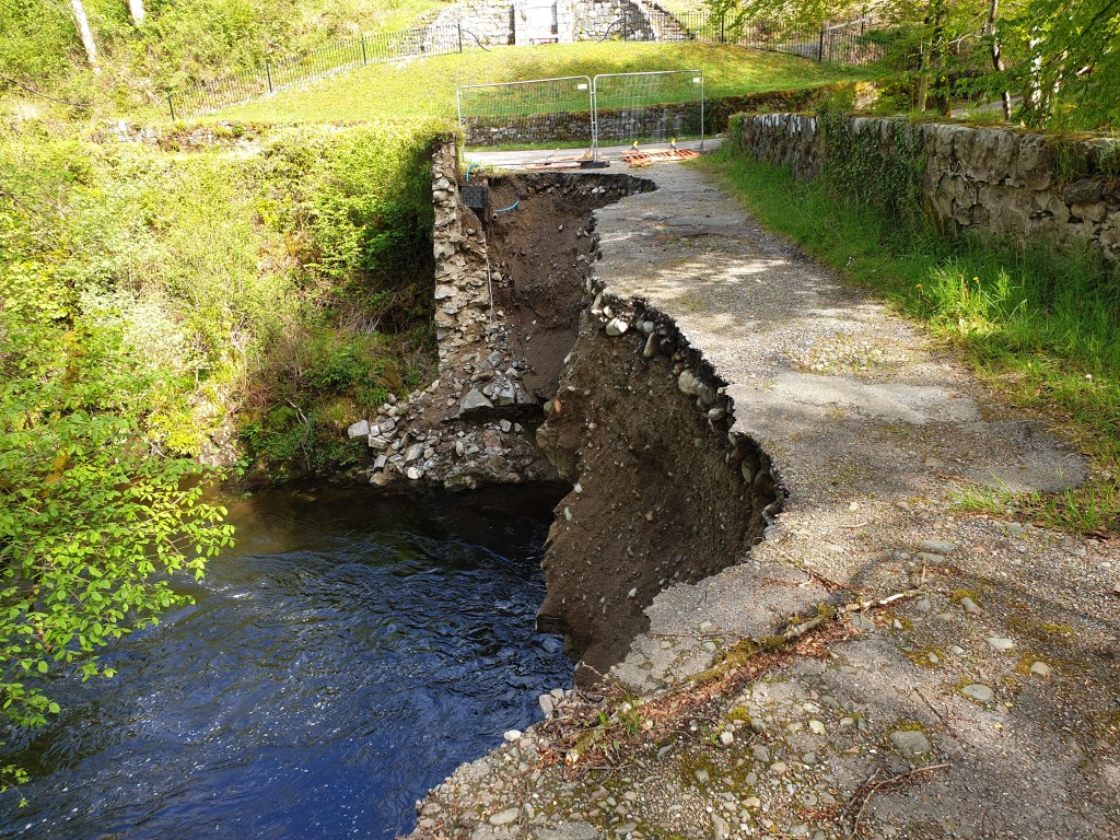 I passed the Five Sisters again, driving east rather than west this time, before reaching Invergary, where I had booked a room in the Glengarry Castle Hotel as a special treat. Nearing my destination at the end of another long day, I met with one last surprise – the old bridge leading to the hotel had collapsed.