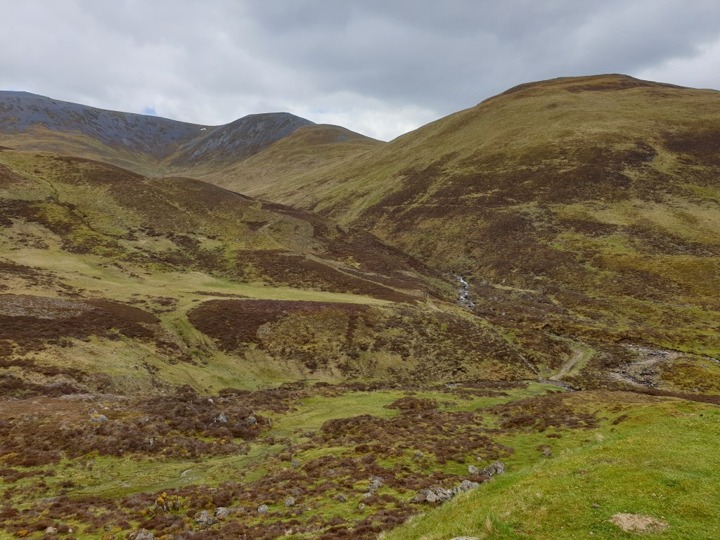 ……before the road climbed into the Cairngorm Mountains. These mountains are different to the ones in the west – greener, rounder, and somehow bulkier and even more imposing. The last snow was melting on their summits – you can ski here in winter. I stopped several times to photograph the beautiful, rolling scenery.