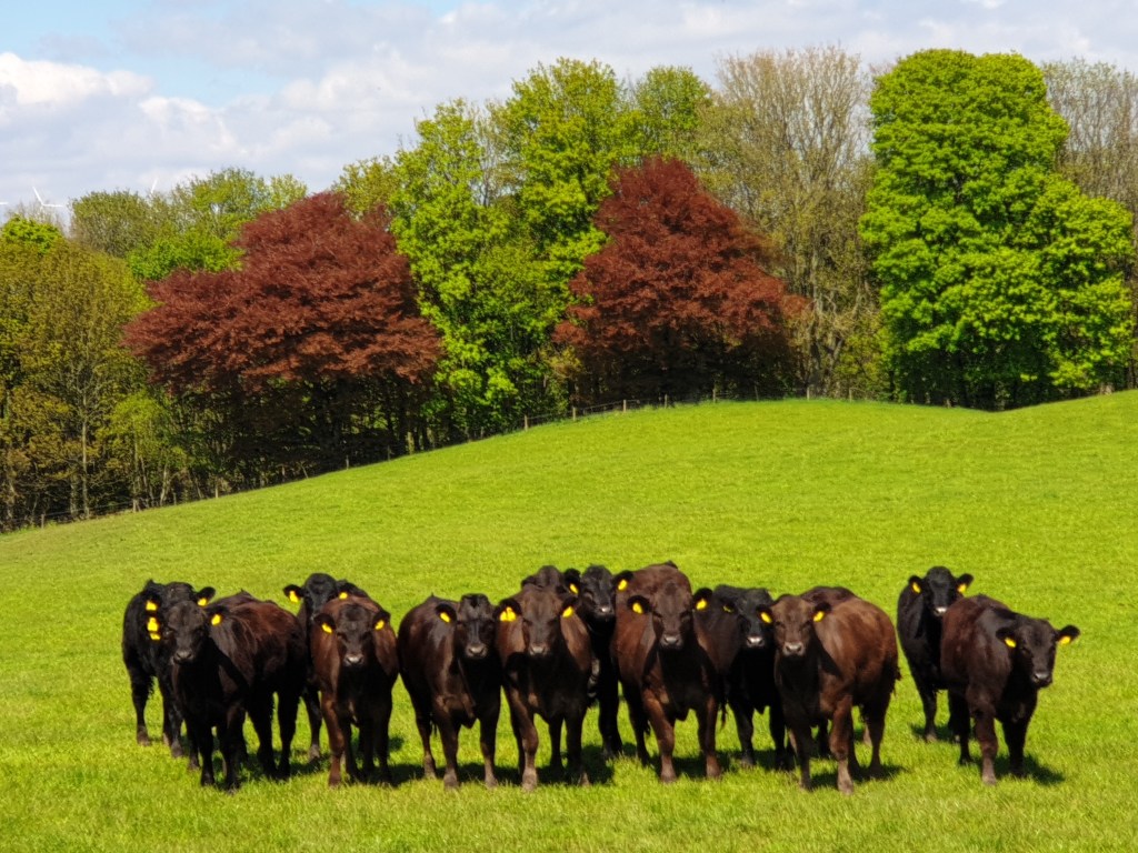From the Cairngorms the road descended through lush pastures with beautiful shades of green and red. I stopped to take a photo and a herd of cows gathered together to have their group portrait taken by me.