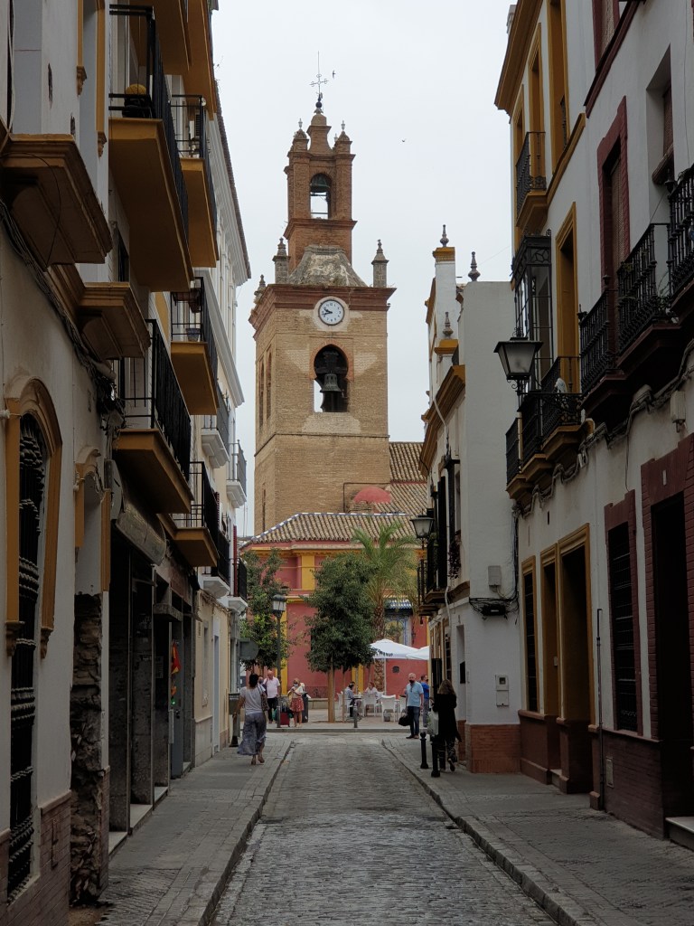 ……..before crossing over one of its bridges to reach the area called Alameda de Hercules. The streets were narrow, and I enjoyed the sounds of a city waking up – friends chatting noisily in neighbourhood cafes, someone practicing guitar on an upstairs balcony……It was a charming insight into the real everyday life of the Sevillanos, with not another tourist in sight. There were pretty churches and tempting cafes everywhere.