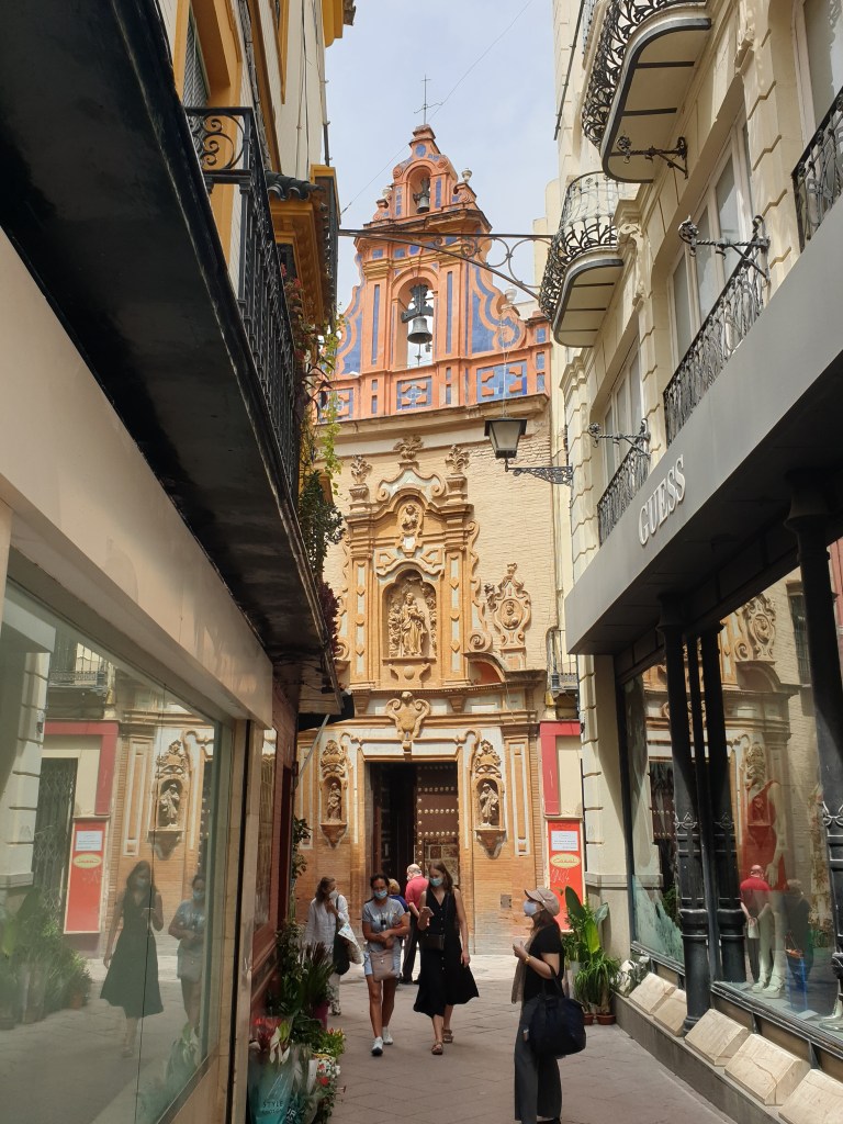 When I had finally finished my visit of the Palacio de las Duenas, I walked back through the busy city centre, finding yet more pretty churches…………