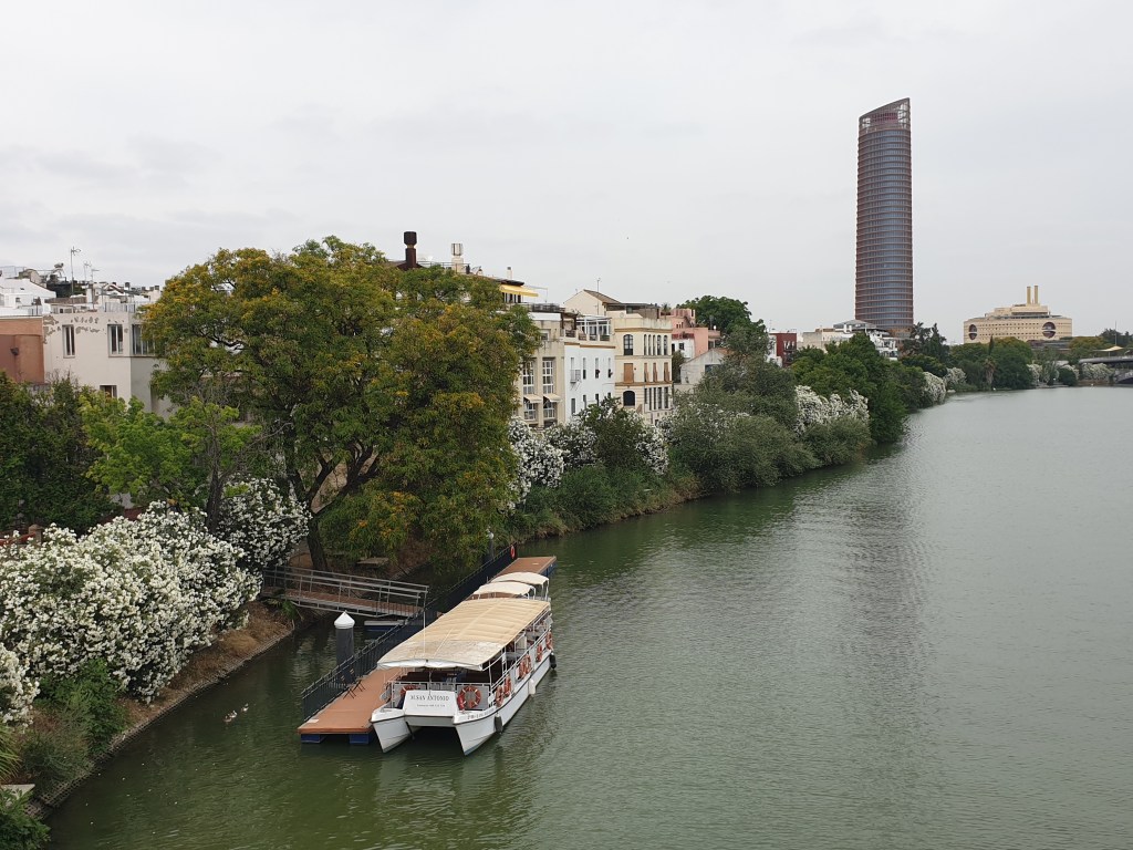 That evening I headed out for a typical Seville evening – dinner in three different places. First, I had tapas at a restaurant on the Guadalquivir River, with views over to the cathedral and bullring in the historic centre……….