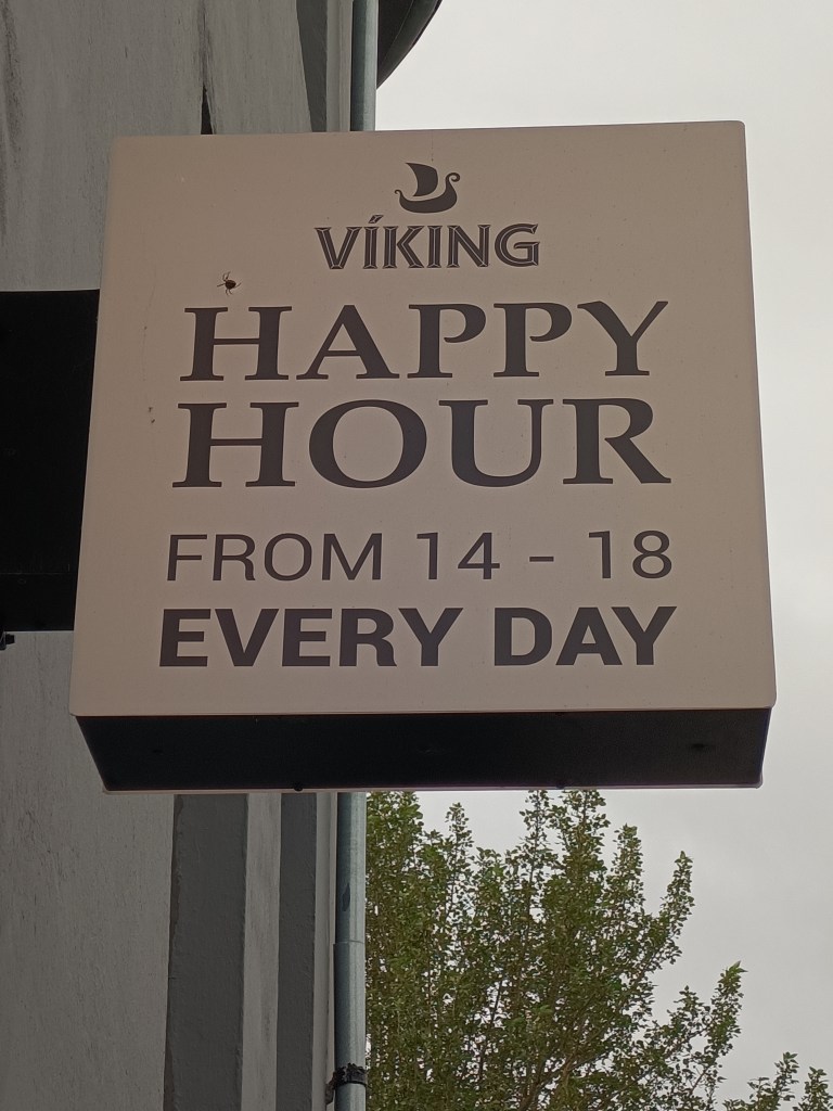 I stopped for a well-needed and rather good and little cappuccino, calculating that it cost 4€. Yes, Iceland is expensive, with most things costing roughly 50% more than Paris or London. Suitably woken up by the caffeine of the cappuccino (and its cost!), I explored further. It was a very short stroll to reach the “downtown”, where I found a collection of bars. Most of these offered happy hours, some starting as early as 14.00 hours. Like most Nordic states, alcohol is very expensive in Iceland and happy hour is the only time when alcoholic drinks are affordable.