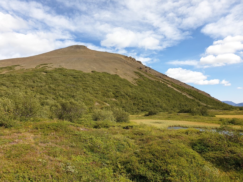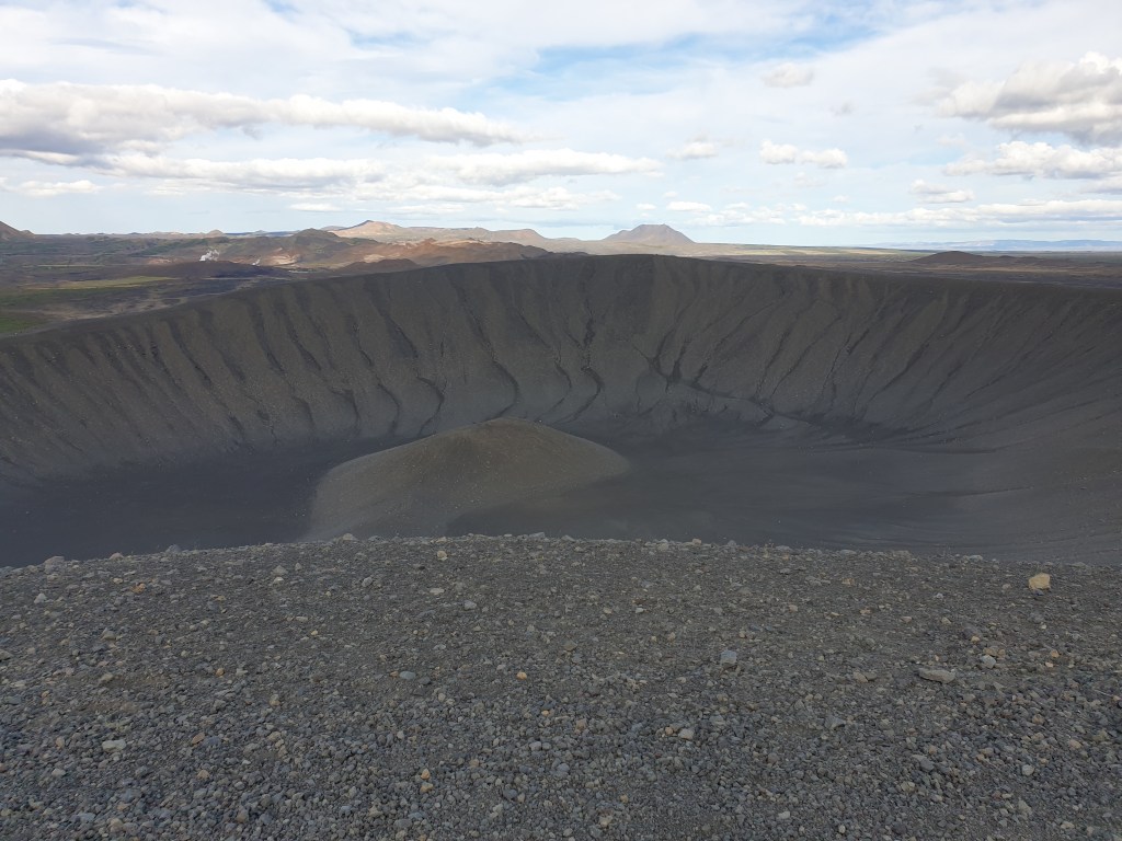 In contrast, the climb up was extremely hard and monotonous – the soft grey ash that formed the cone gave way under foot, and for every two steps up, I slid one step back. When I finally reached the top, the view was only average – the crater had no water, and resembled a giant grey ashtray. The view of the surrounding area was good, but not as good as I had experienced in my morning climb of Vindbelgjarfall.