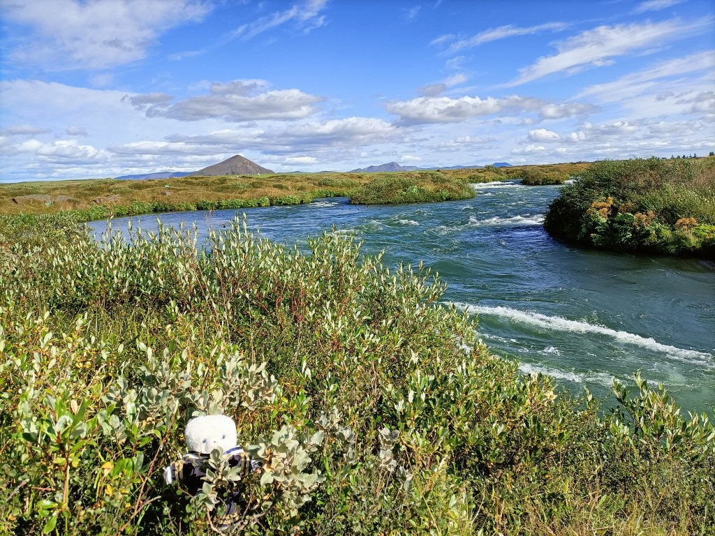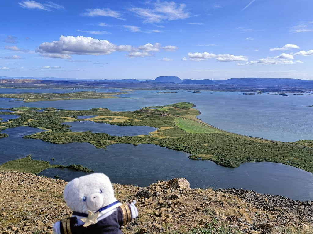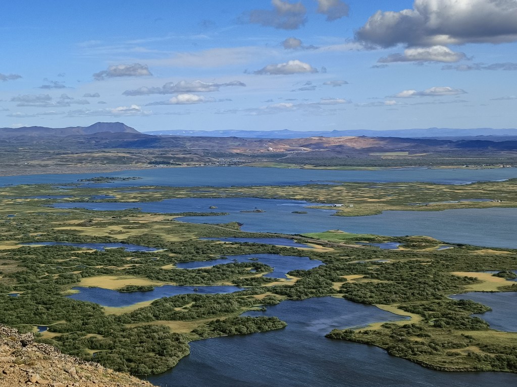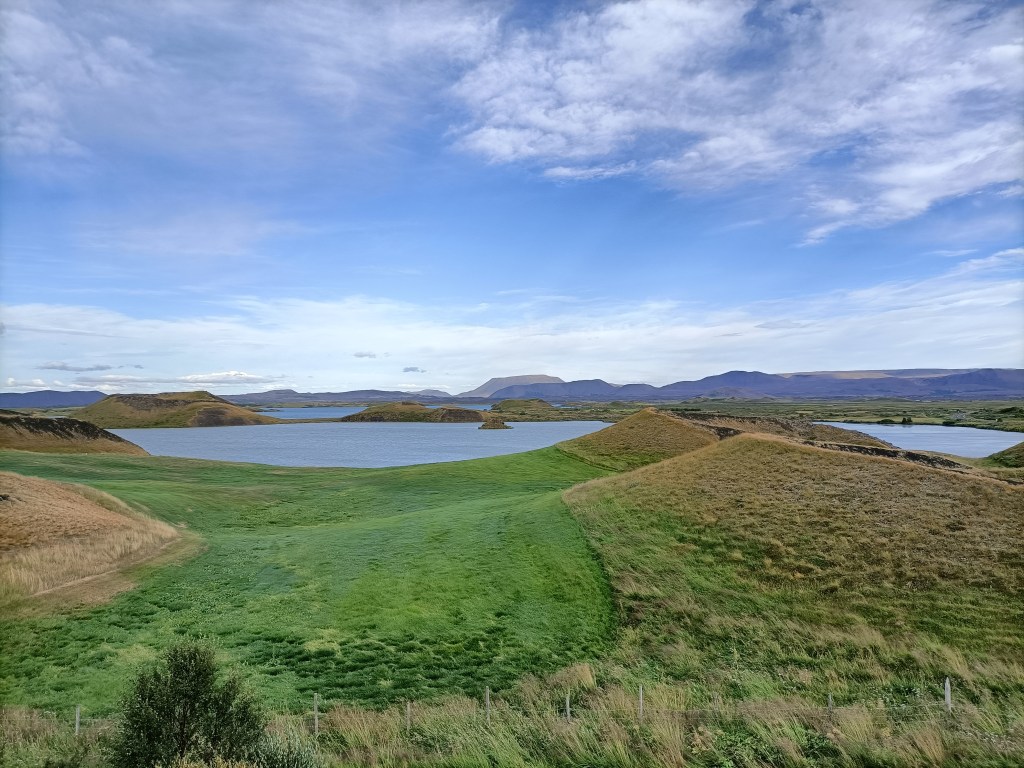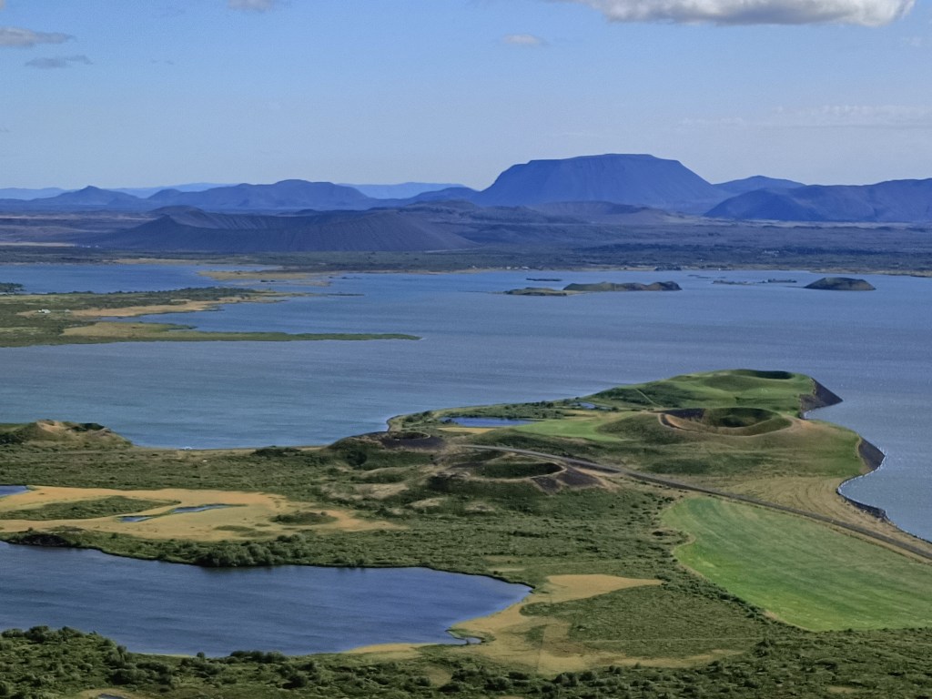 After two long and very busy days, I resolved to take it easier today and left late to explore Myvatn, a large, shallow lake formed by a volcanic eruption 2000 years ago. The lake is lush and green, with lots of small islands, bubbling rivers entering or leaving the lake, and lots of bird life. It is surrounding by many interesting volcanic structures. My only plan for today was to drive around the lake clockwise and see what I would find.