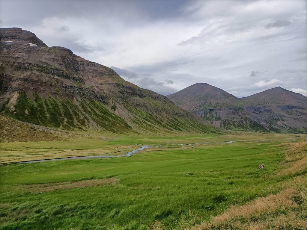 As noon approached, I really fancied a coffee and looked in vain for somewhere to stop. Lonely planet recommended a couple of places but they were both closed (in the peak of the tourist season….). “Surely there will be somewhere in the next town” I kept on telling myself………but each settlement was a tiny windswept village, often without any shops at all. The weather changed, and it became overcast, with rain showers. My mood dropped. Finally at a place Hosfos I found a petrol station with a big shop attached…..and a café! However, their only coffee come not form a machine but a large thermos flask that had been filled with cheap filter coffee, which had been brewed long ago. I paid for a coffee and was given a paper cup to fill myself from the flask. Undrinkable. I searched on google for cafés near my location. The only place indicated within 100km was in an unlikely place – the tiny village of Holar, about 10km off the main road. Remembering that Holar (but not its café) was also mentioned in Lonely Planet, I decided to give it a go.