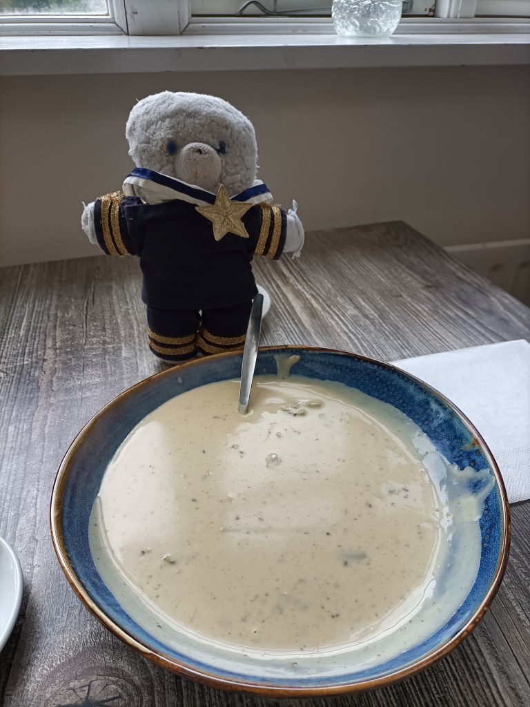 I could see a café attached the university buildings, but the lights inside were off. I tried the door in desperation…………and it opened! Inside was a small counter…….with a coffee machine. I rang a bell for service and a friendly Icelander served me expresso. He also recommended his asparagus and mushroom soup, made with mushrooms from the mountains around Holar – it was delicious!