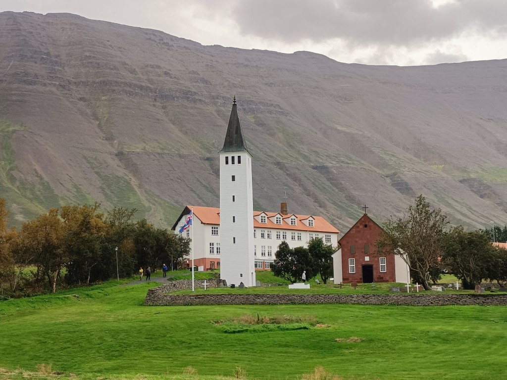 Despite the rain and clouds, Holar turned out to be a pretty little village nestling at the foot of tall mountains. Although tiny today, Holar was an important religious centre in the past and was a bishopric from 1106 to 1798. The see of Holar was restored in 1909 and there is a Bishop of Holar to this day. Holar had a pretty church (technically a cathedral even) dating from 1760 and some traditional old buildings with turf roofs. Continuing its tradition of being a centre of learning, Holar also has a (admittedly small) university teaching agriculture and tourism.