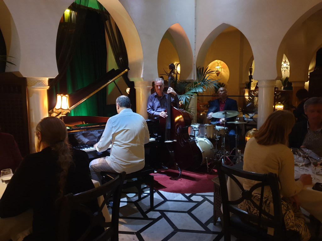 I flew into Casablanca, the biggest city and economic hub of the country, arriving in the early evening. My flight was on time, and almost empty, and getting through the airport on arrival took me only 20 minutes (which included investing in a Moroccan Sim card). I checked into my hotel and headed straight off to dinner at Rick’s Café, one of the city’s most famous nightspots. My first impressions of Casablanca during the walk there were not so positive – much of the city appears to be falling down or being rebuilt. A few sleek new buildings stood out from the debris of the rest of the city. Rick’s turned out to be worth the walk – it is a café designed in the style of the film set of “Casablanca” and served excellent food and drinks to the sounds of live jazz.