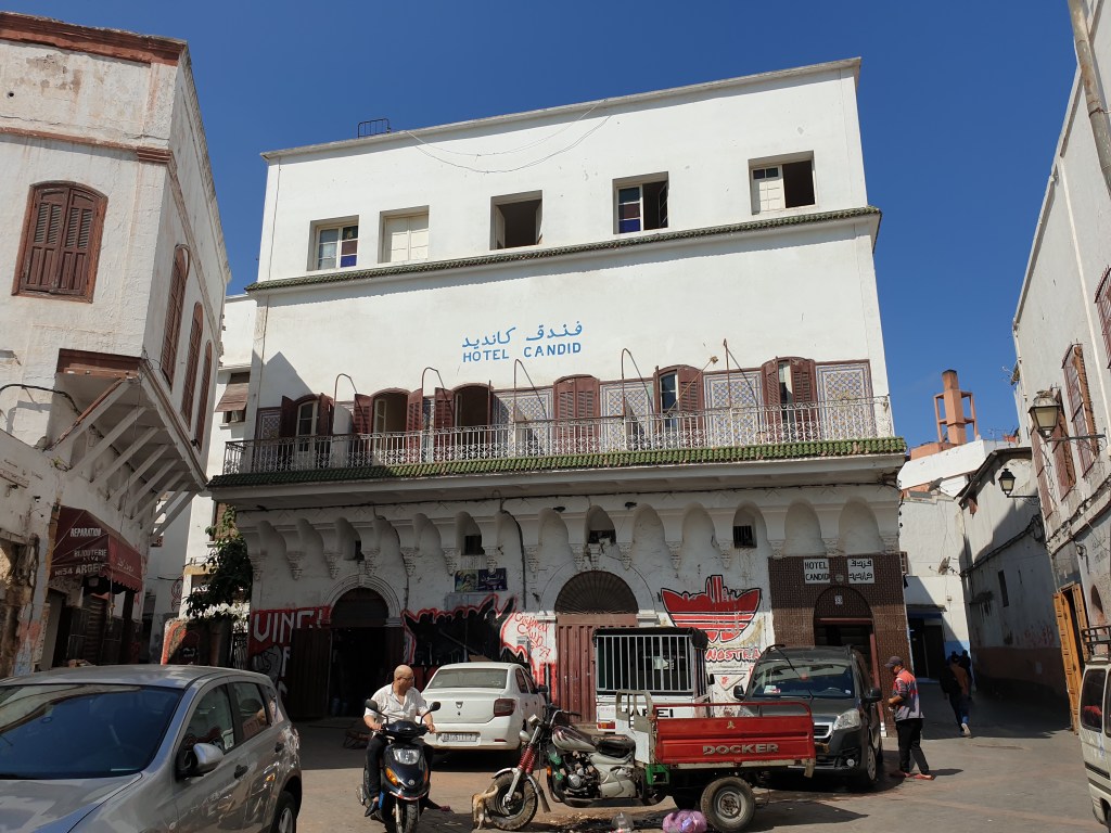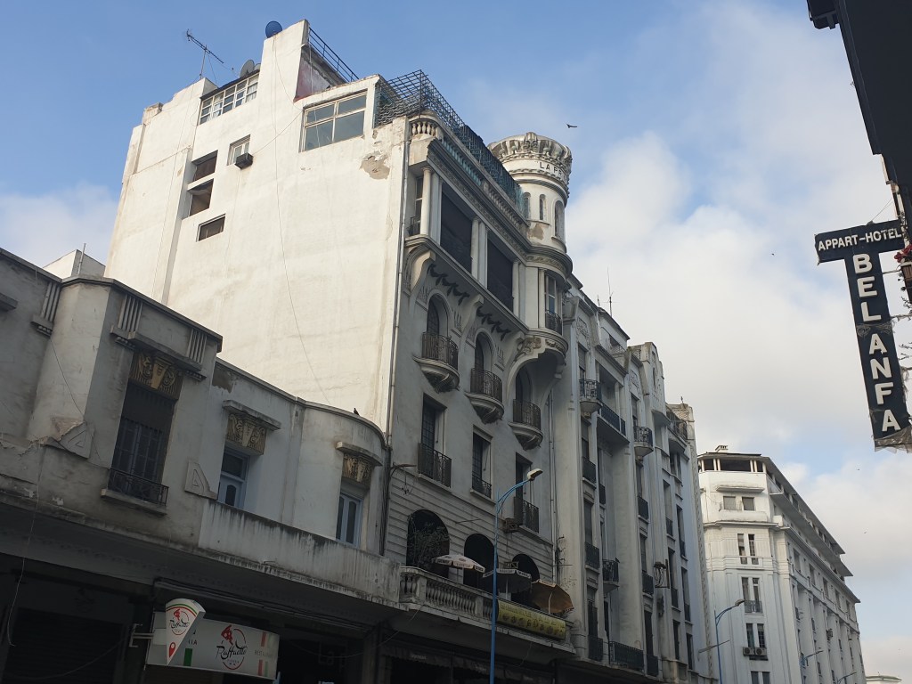 Next morning, the noise of the city woke me early. I decided to get up and explore, since I had only reserved half a day in Casablanca. First, I strolled around the centre, admiring some crumbling but interesting buildings from the 20th century…….