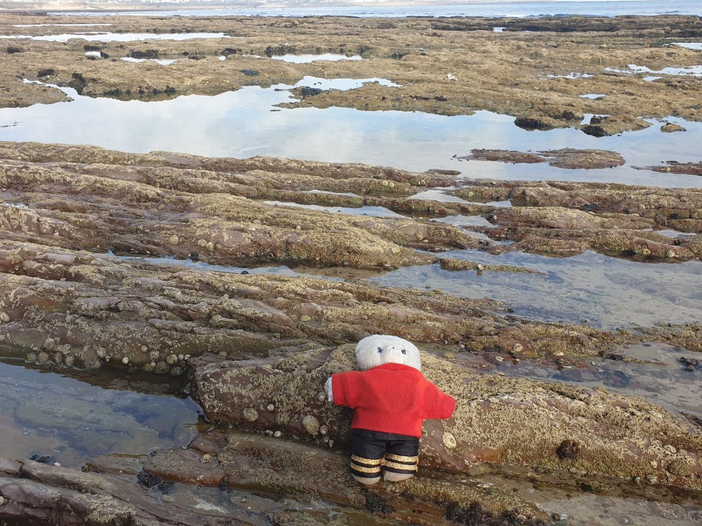 …..and then disaster struck. A gust of wind lifted me off my paws and blew me into the Atlantic Ocean. As you can imagine, teddy bears are not good swimmers – we have little arms and legs, and our fur quickly gets waterlogged. Fortunately, a passing Moroccan waded into the water to pull me out, and after thanking him I lay on the beach, trying to dry out a bit.