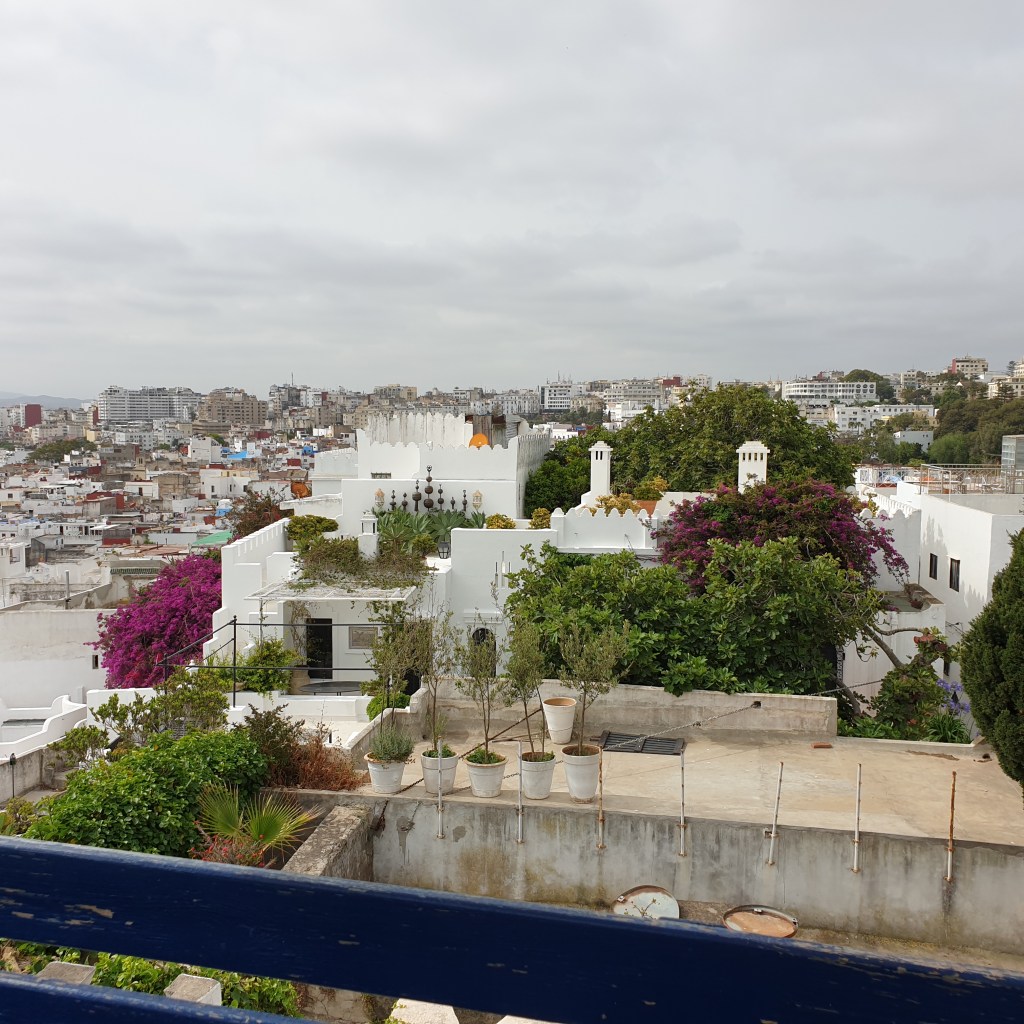 The tea glasses reminded me that I needed coffee – which is always nearby in Morocco. I headed to the roof of the Café Bleu, from where there was a great view over Tangier.