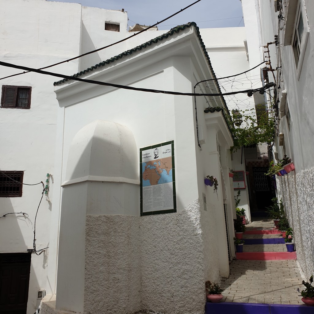 Today I had a whole day to discover Tangier. I started with the various museums in the medina, some of which had been recently created as part of the city’s rejuvenation. The first was a museum devoted to Ibn Battouta who, in three long trips in the first half of the 14th century, visited West Africa (as far as the empire of Mali), Mecca and the Middle East, East Africa, Central Asia, India, Burma and China – easily out-travelling Marco Polo. The museum was housed in a nice old building, but suffered from a lack of objects to display, relying instead on large panels displaying Ibn Battouta’s travels. A great story, but not enough to base a museum on – although I did learn that the 14th Century Emperor of Mali might have been the richest man of all time (correcting for inflation). A bit later in the day, I stumbled on Ibn Battouta’s tomb, hidden down one of the medina alleyways. I wondered if the great traveller would have wanted to be buried in an obscure corner of his hometown, or whether he perhaps had hoped for a more exotic resting place.