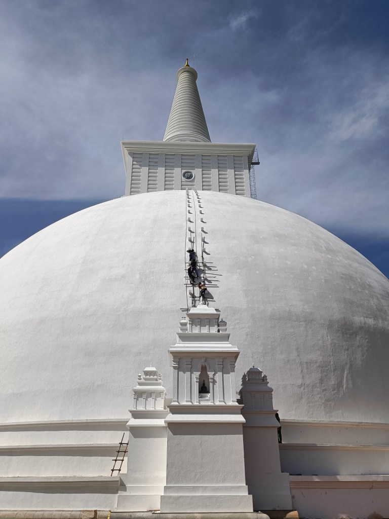 Eventually it was time to move on, and my next stop was the huge Sandahiru Seya stupa, which can be seen from almost anywhere around Anuradaphura. It was started in 2010 and construction was only just finishing, so it was not yet recommended in any of the guidebooks. I found its perfect shape and brilliant white colour very beautiful and watched the workers completing the final bits of work.