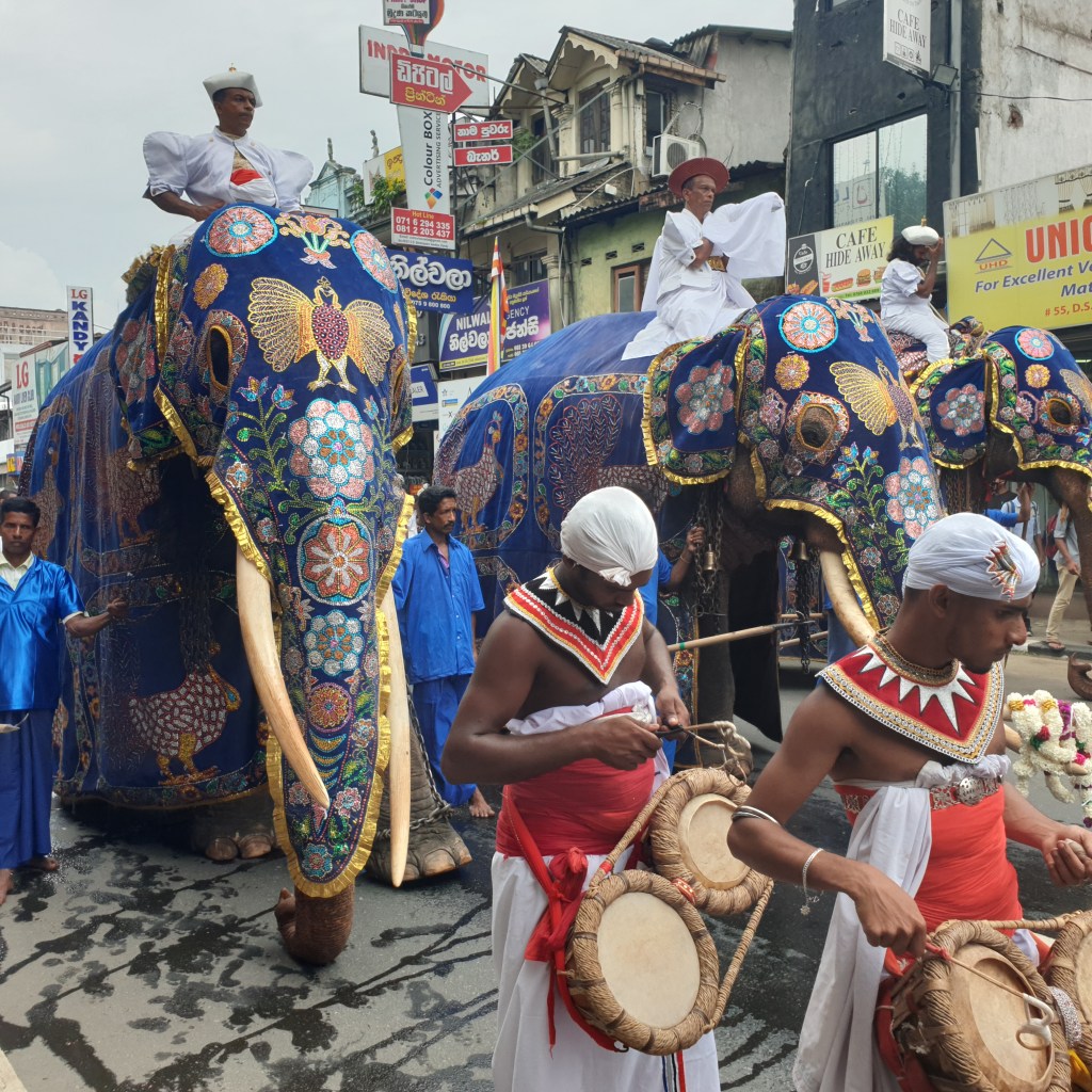 My driver and I then went to my hotel but encountered a big traffic jam. It had an unusual cause – the road had been blocked for a procession of Sri Lankan drummers and three elephants. It was a practice procession for Kandy’s big religious festival called Esala Perahera, which celebrates the sacred Buddha tooth relic which is kept in Kandy. I knew that I would miss the main festival by a few days, so I jumped out of the car and ran to get some photos.