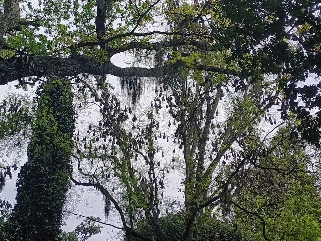 Some corners of the gardens had a huge populations of fruit bats. Enterprising garden workers would ask tourists for a few rupees, and would then shake the trees to unleash a crowd of screeching animals.