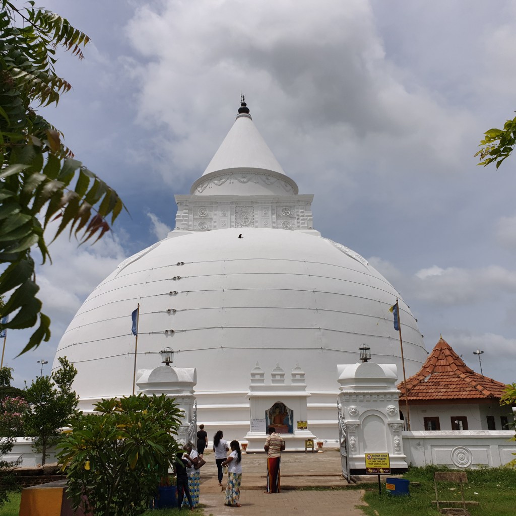 Form Wellawaya the road became flat and straight, and I dozed off until we had arrived at Tissa, where we made another stop to admire the brilliant white, perfectly formed Tissa Dagoba. This was originally built in 200BCE but was in excellent condition, having been completely restored about a hundred years ago.
