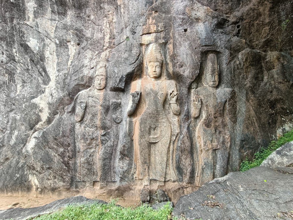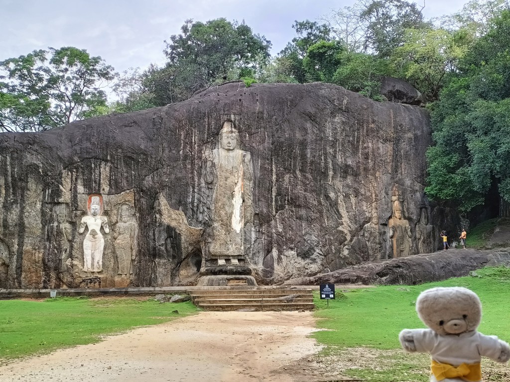 Near the town of Wellawaya I asked the guide to do another detour to see some famous standing buddha statues, carved out of a large rock. Once again, I had a beautiful site with ancient (1000 years old) monuments all to myself.
