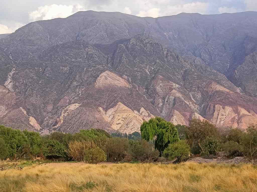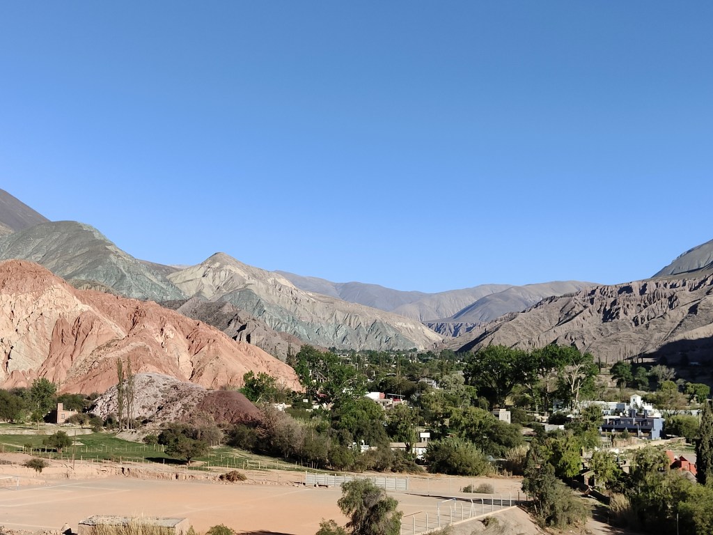 My next day was spent with getting to the Quebrada de Humahuaca in the far northwest of the country, near the borders with Boliva and Chile – famous for its spectacular coloured rock formations.  I had a couple of hours free in the morning before my flight, which I spent unsuccessfully looking for a Western Union branch that had enough money to pay my second transfer. After that it was a two-hour flight to Salta, and a three hour drive to the small town of Purmamarca. At first the road passed through nondescript, flat, featureless and dry country, with litter strewn by the side of the road. As I approached my destination, it climbed. The weather had become cloudy, but I could still make out the outlines of tall mountains all around me. I arrived at six, to find a town bustling with travellers and full of bars, shops and restaurants serving them; it had a nice, busy atmosphere.  I celebrated my arrival with a beer in a café on the town’s central plaza The clouds had lifted, and I could see that all around the town was surrounded by bright red, brown and green rock formations, promising some interesting exploration over the next two days.