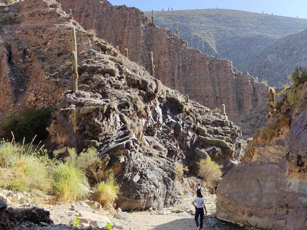 My final destination for the day was the Garganta del Diabolo, a waterfall in a canyon a short way outside of Tilcara. I found the start of the path, where a signpost offered the choice of a direct 4km walk or an 8km drive by a different, longer route. It was baking hot, so I decided to a be lazy and drive. This may have been a mistake since the track was very steep, with a heavily pockmarked surface. Even though I went very slowly, it was a very stressful drive. I finally reached a car park and gave a big sigh of relief. From there, it was a short walk to the waterfall, which turned out to be rather disappointing after all the effort to get there, but the canyon I walked through offered some interesting views and good photos.