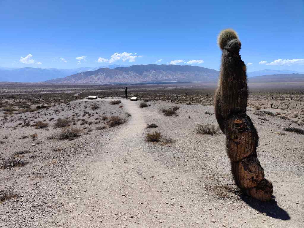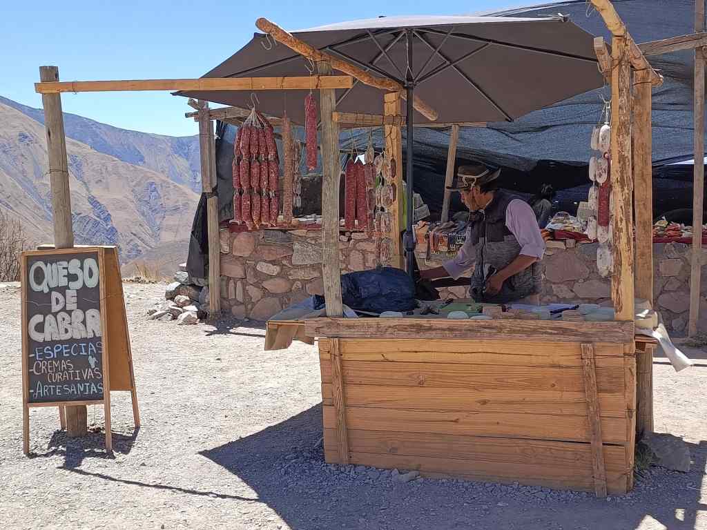 Near the top of the track, I stopped to buy sausage and cheese from some local people. I had now entered the Parque Nacional de los Cardones – (translated literally as the “Cactus National Park”.), and I stopped to enjoy a short walk amidst the wild, empty hills and to eat my lunch.