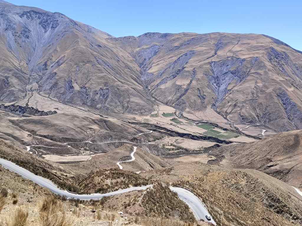 My next day was spent exploring South of Salta, driving to a village called Cachi, lost in the Andean foothills. The road followed a now familiar pattern. First lush, flat green fields with horses and other four-legged road hazards………