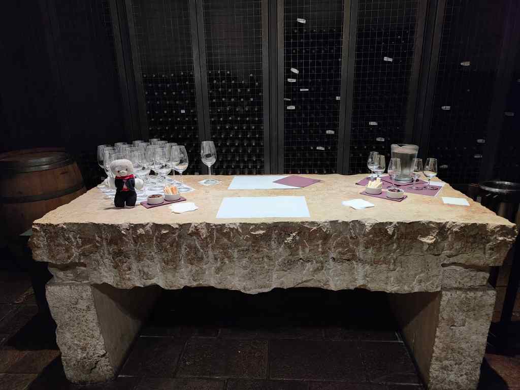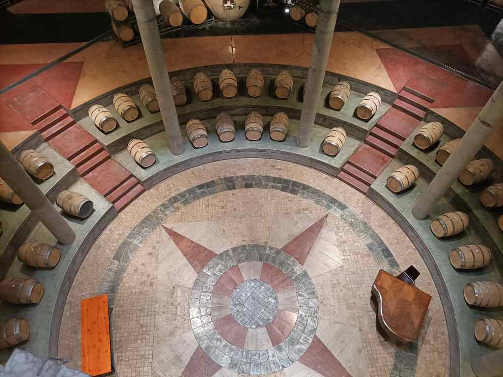 It was hot outside – maybe 30C – but inside, the temperature was pleasantly cool. This was achieved naturally through clever ventilation and without air-conditioning. There was a very pleasant, almost overpowering smell of wine permeating the cool air.