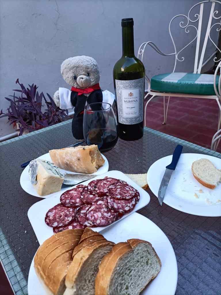 I am very happy that I had invited my editorial assistant to join me on the tour; it meant that I could drink, whilst my driver-assistant had to taste and spit. After the tasting, we were of course invited to visit the shop. I chose to buy a bottle of Petit Verdot, a grape usually found in blends but here offered on its own. Back in my house in Mendoza I enjoyed my purchase with some sausage and cheese in my private patio. A nice way to end a day devoted to wine.