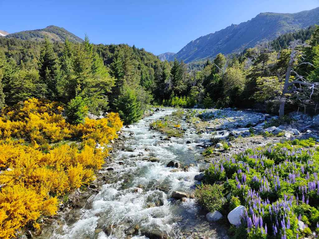 When I got up in the morning, after a very poor night’s sleep, I resolved to write off my investment in my AirBnb flat and booked a new place to stay – outside of town, to have some peace. Before checking in, I picked up my hire car and set off to explore the “cuircuito chico” – a road trip to the west of Bariloche. The scenery was pretty – a bright blue lakes, mountains, and lots of golden broom flowers.