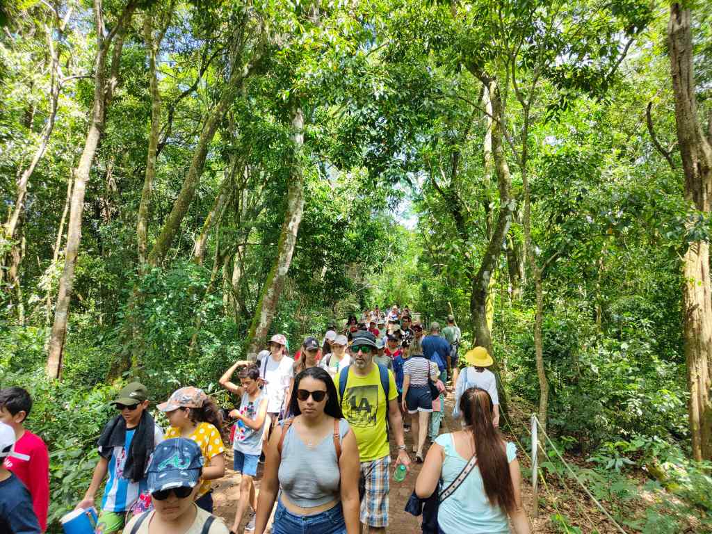 I finished the “lower circuit” just as the first tour groups began to arrive and started the “upper circuit”. This had more amazing views, but at times was unpleasantly crowded. It was hard for someone small like me to get a view, and when I climbed up onto the railings to take photos, I worried about getting knocked off by tourists jostling to take selfies. The path back from the falls went through some interesting jungle, where I saw a baby crocodile…