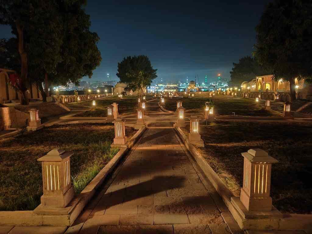 I was a bit worried about our remote location, but the hotel owner came to greet me and told me that they operated a free ferry across the Nile to get the city. After enjoying my room for a while, I decided to use this facility to cross the river to check out the centre of Luxor. It was now dark, and on the way to the pier, I got to enjoy another aspect of the hotel’s design.