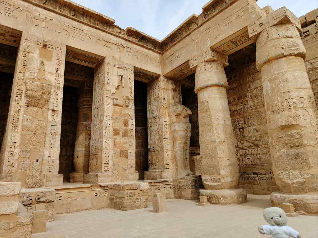 I had decided to spread my visit of Luxor’s west bank – site of countless ancient tombs – over two days. It was a wise decision. My hotel provided me with a car and driver and I set off. The entry to the west bank is guarded by two giant statues of Amenhotep III, which were rather worse for wear and now resembled modern art sculptures.