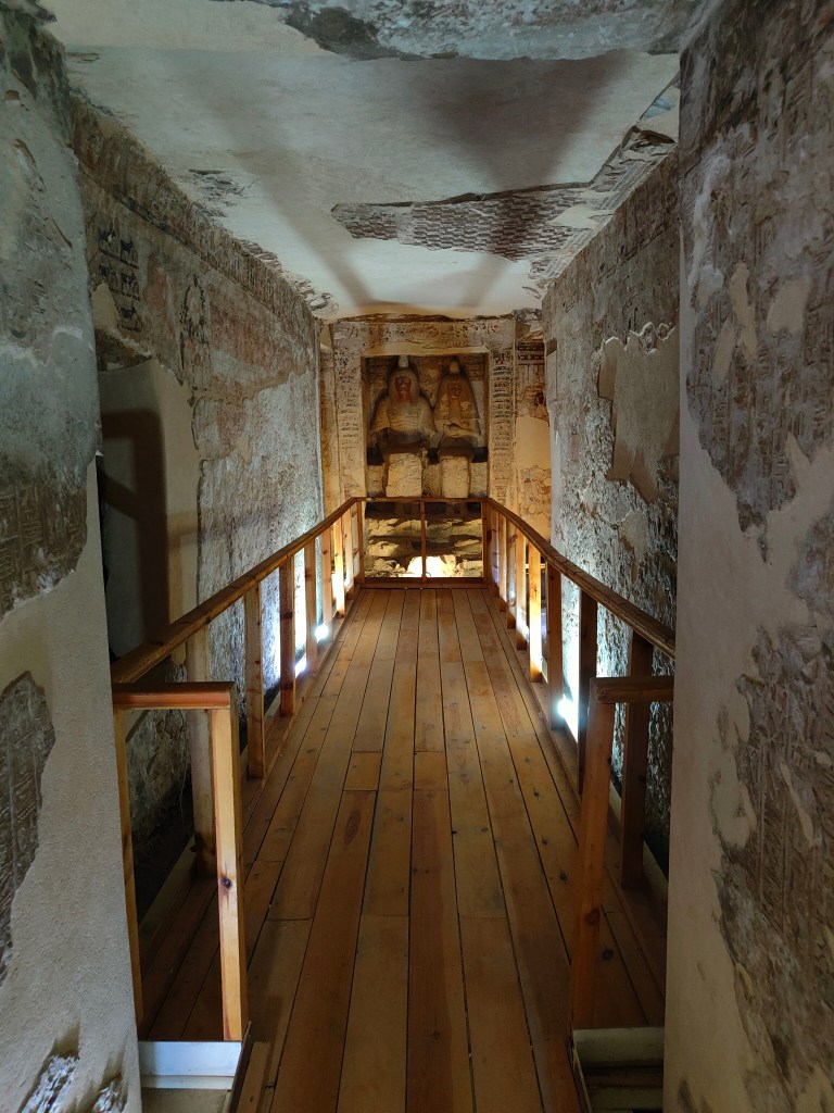 From Sennofer’s tomb I headed across the dusty site to the more remote tombs of Menna (an estate inspector) and Nahkt (an astronomer). These were locked, and I had to wait for the guardian to come and unlock them for me.