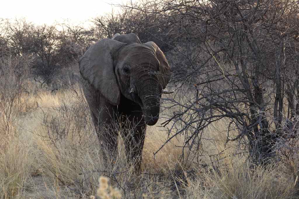 I finally arrived at 4pm at the Mushara Bush Camp, a lodge located just outside of the park. Eager to finally see something interesting after nearly three full days travelling and overnighting, I dumped my bags in my rather stylish tent, and set off to the park gate in my car, where I paid my entrance fee and bought a guidebook which had a map and several pages of drawings of the reserve’s animals. As soon as I had driven inside, a new world opened up. Antelope and giraffes stood nonchalantly by the side of the road (or sometimes in the road), as the bush began to come back to life after the heat of the midday sun. Like most newly arrived visitors, I spent a lot of time photographing giraffes, springboks and zebras – animals so common that after a couple of days I barely noticed them anymore.