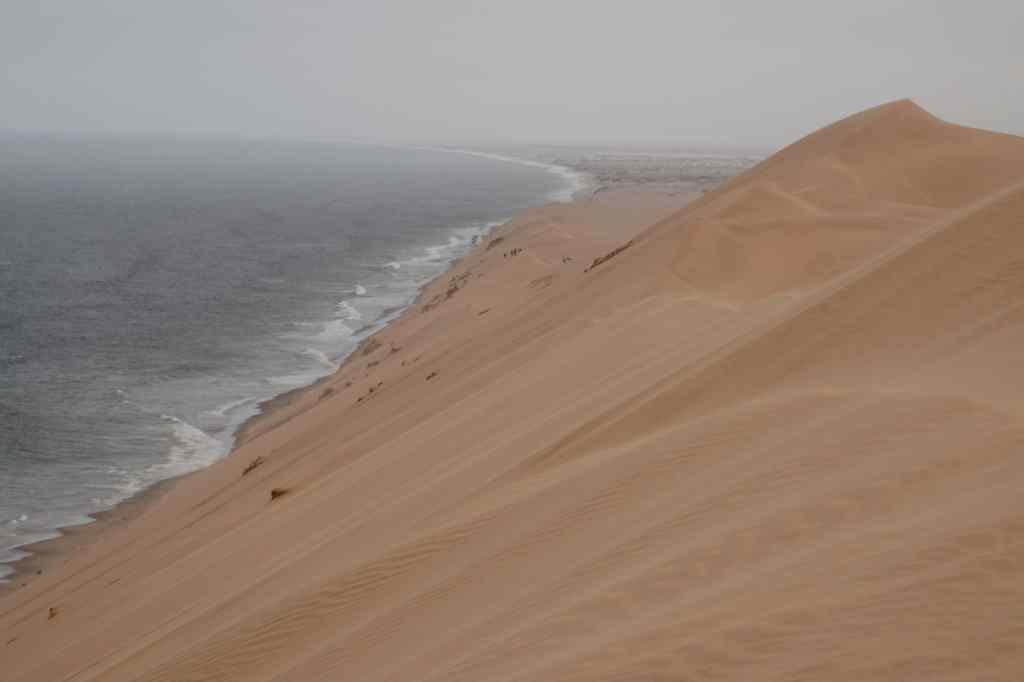 My tour continued towards Sandwich Harbour, a national park accessible only by 4×4. At first the scenery was pleasant but unremarkable, a little bit like the Skeleton Coast, but a bit sunnier; but in the distance I could see the giant dunes plunging into the sea. This was our destination.