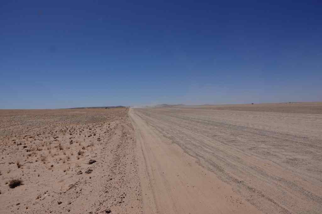 Today I made the long drive from Swakopmund on the coast to the centre of Namibia, to a place called Sesriem, near Sossusvlei, where Namibia’s most famous sand dunes are located. At Swakopmund several people told the road was in bad condition and the drive very boring. At first, they seemed to be right, as I crossed an almost featureless desert while bouncing up and down as I drove over a badly corrugated section of track.