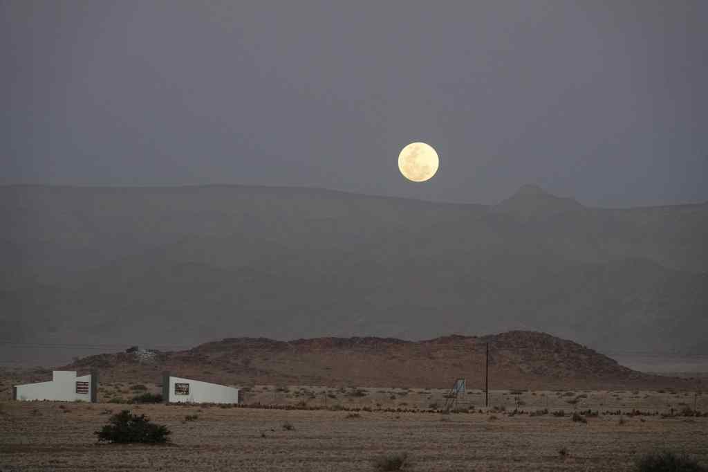 From Solitaire it was a short drive to my accommodation – yet another bush camp, located on a flat desert plain, about forty minutes drive from the entrance to the Sossusvlei national park. I enjoyed a glass of wine from their lounge as I watched the moon rise over the distant mountains.